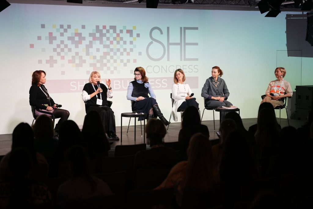 А She in Creative Industries за модерації Іванни Слабошпицької («КИЇВ24») зібрала лідерів медіа та дизайну. Влад Іваненко (Playboy), Антоніна Хижняк (заслужена артистка України), Ірина Метньова (Vandog Agency), Світлана Терещенко (BORISTENE),  Анна Мачух (ОМКФ) поділилися досвідом розвитку проєктів та виходу українських брендів на міжнародний ринок. А Тетяна Коровіна («Молокія») розповіла, як креативні рішення надихають жінок на сміливі ідеї та нові проєкти. «Найгірше, що може зробити для себе жінка у креативній індустрії, бізнесі, побуті, загалом у своєму житті, це перестати пробувати нове» – зауважила Тетяна.