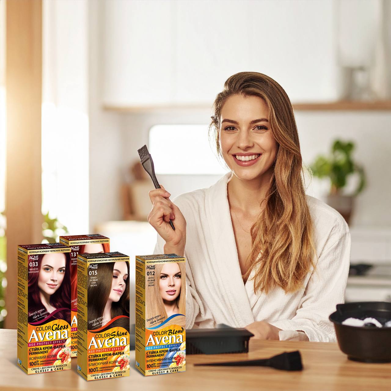 Формули якісних фарб створені так, щоб давати найкращий результат навіть у домашніх умовах. Крем-фарба AVENA гарантує 100% зафарбовування сивини завдяки інтенсивним кольоровим молекулам, які проникають глибоко в кутикулу волосся і надійно фіксують пігмент.